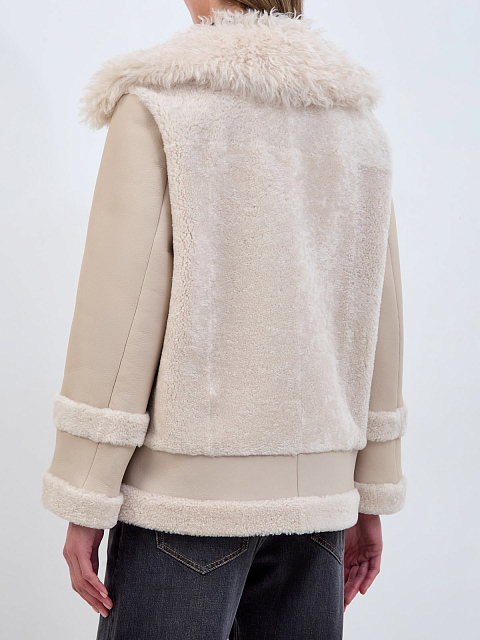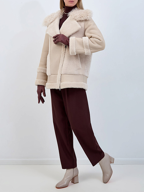 Дубленка-авиатор из мягкой кожи и овчины букле