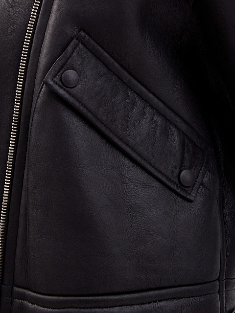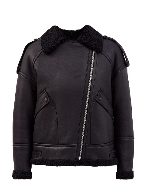 Дубленка-авиатор от Yves Salomon полностью выполнена из фактурного меха и кожи ягненка в черном цвете. Объемный силуэт дополнен асимметричной застежкой на молнию, а также объемными накладными карманами с бортами. Спущенная линия плеч и нижний край с декоративными ремнями подчеркивают неформальный стиль изделия. Детали: отложной воротник, манжеты с разрезами на молниях. Сделано во Франции.