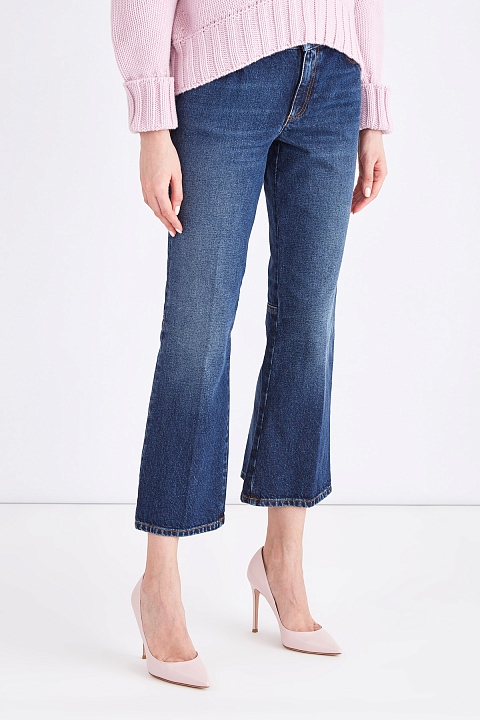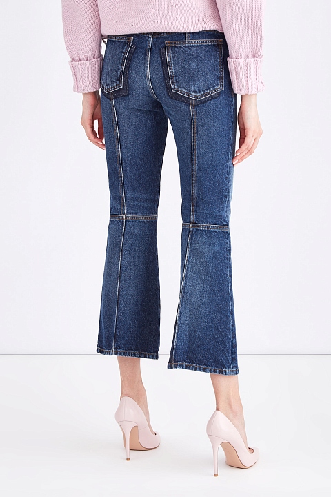 Джинсы длины ⅞ расклешенного кроя с объемными швами на спинке