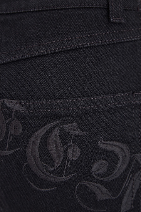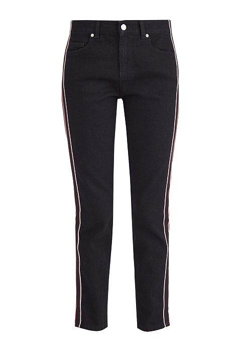 Джинсы укороченного кроя slim с лампасами в стиле селвидж и вышивкой