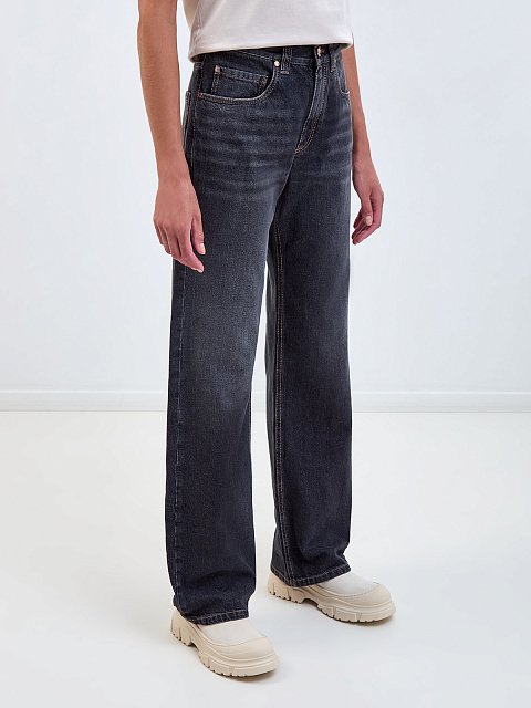 Джинсы Loose из денима Authentic с нашивкой и деталью Мониль