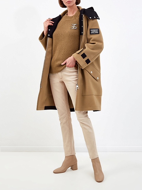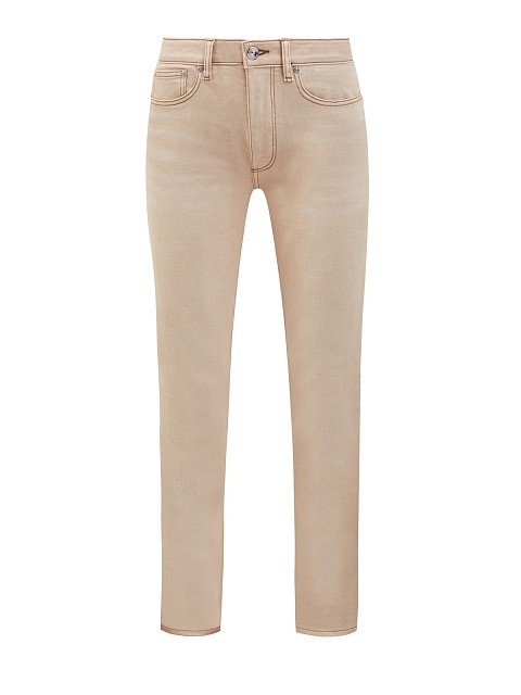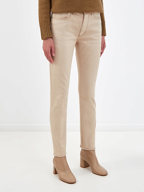 Минималистичные женские джинсы от Burberry выполнены в теплом кремовом оттенке. Для создания модели был выбран натуральный хлопковый деним с добавлением волокон эластана — комфортный материал повторяет движения тела и идеально подходит для составления повседневных образов. Детали: контрастная нашивка на спинке, застежка на пуговицу и молнию, пять карманов, прострочка оттенка охры.