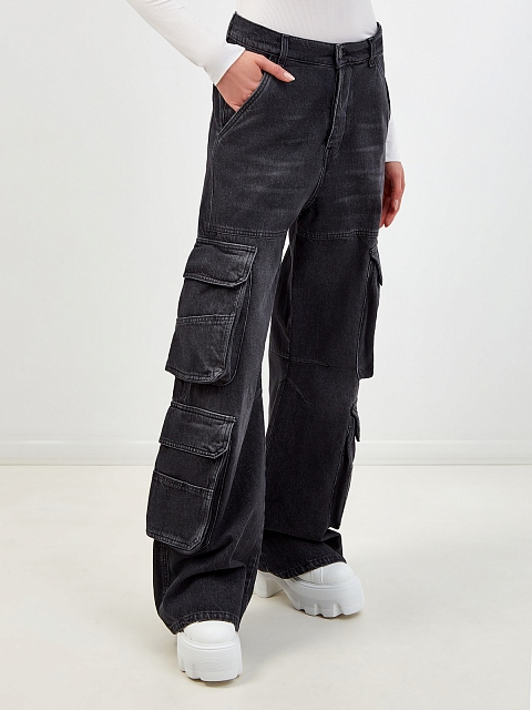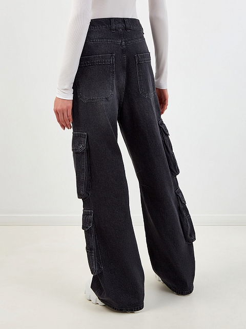 Широкие джинсы D-Side в стиле 90-х с объемными карманами карго