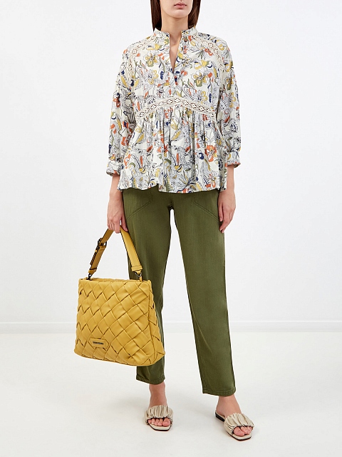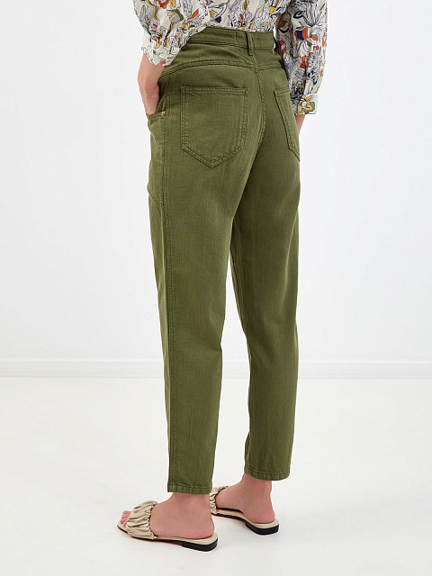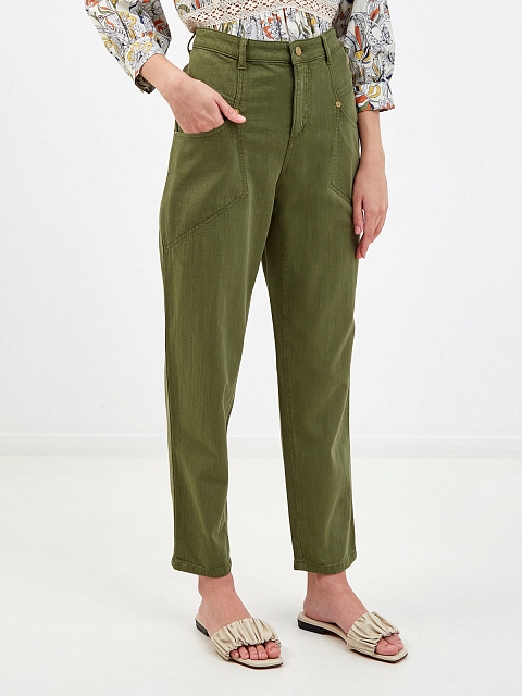Джинсы оттенка хаки с архитектурными накладными карманами
