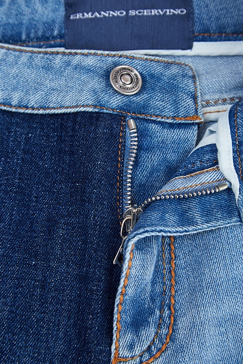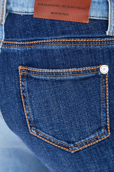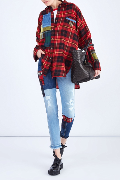 Эффектные джинсы зауженного кроя от Ermanno Scervino выполнены в технике петчворк из хлопкового денима светло-голубых и насыщенных синих тонов. Нашивки с принтом в клетку тартан придают образу акцент в стиле панк. Нотки гранджа в образ вносят декоративные потертости и прорези. Детали: бахрома по нижним кромкам, объемная выполненная вручную вышивка, пять карманов. Сделано в Италии.