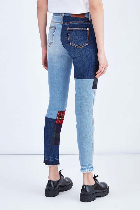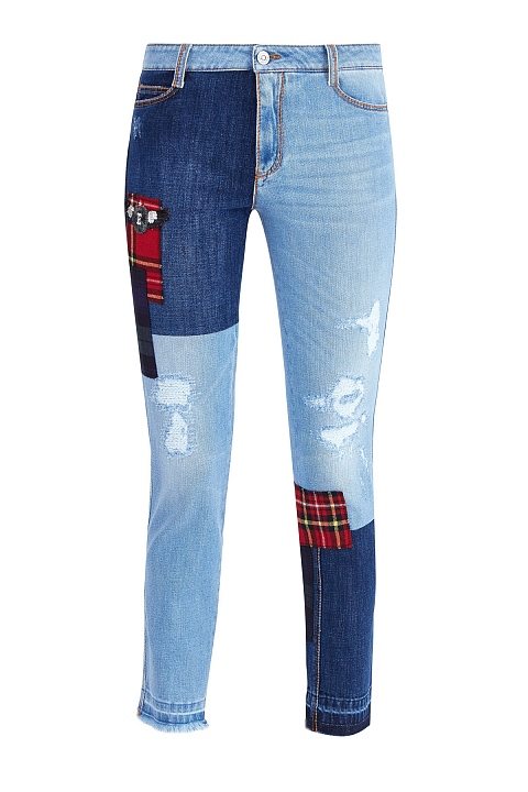 Узкие укороченные джинсы в технике петчворк