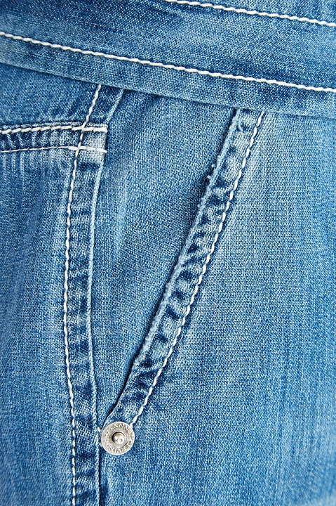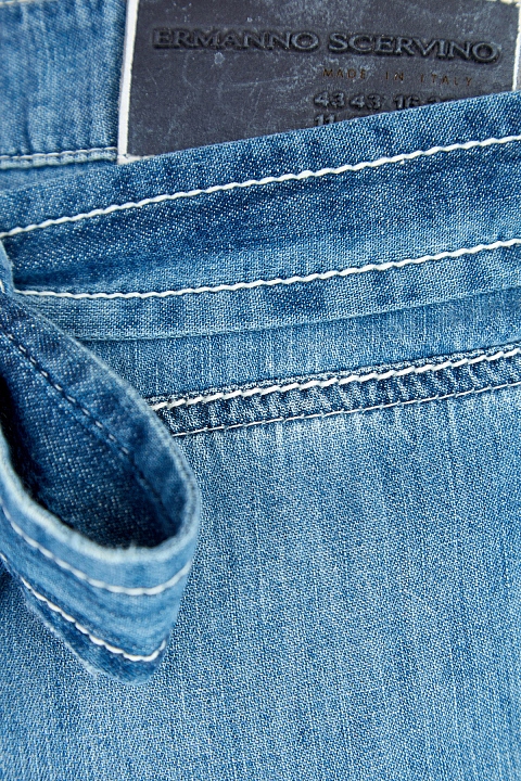 Джинсы расслабленного силуэта boyfriend от Ermanno Scervino выполнены из тонкого хлопкового денима голубого оттенка с эффектом варки и градиентными разводами. Модель сложного составного кроя с фактурными швами дополнена поясом-лентой. Детали: длина ⅞, прорезные диагональные карманы, кожаная нашивка на поясе. Сделано в Италии.
