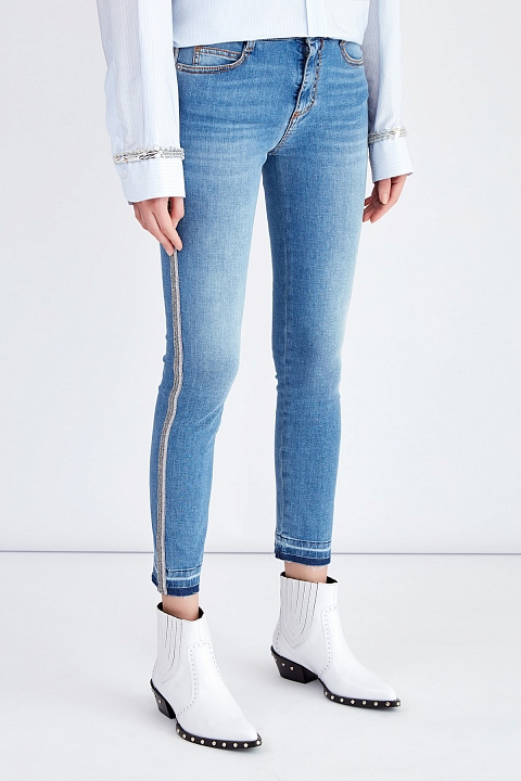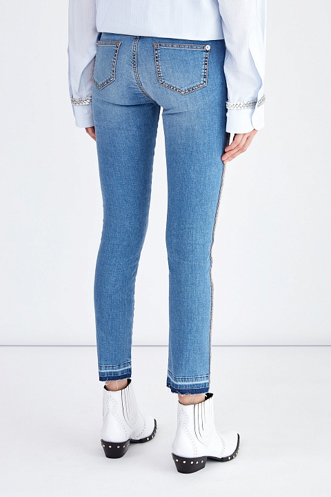 Джинсы-скинни длины ⅞ с расшитыми вручную лампасами