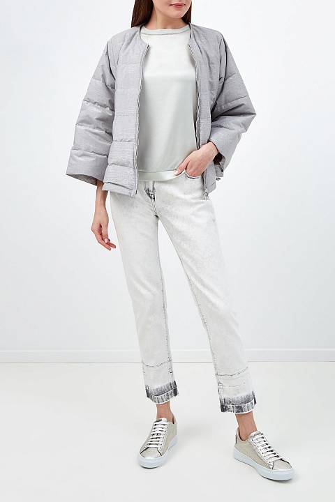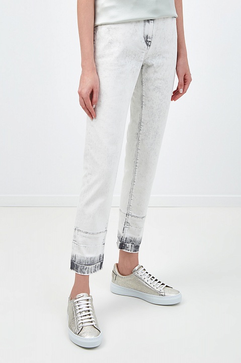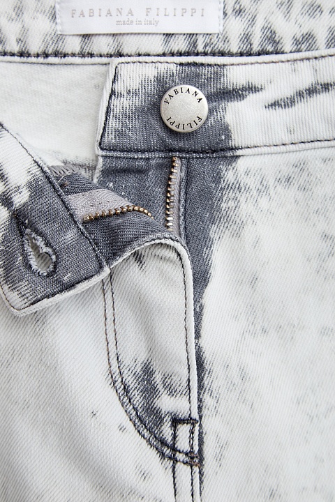 Укороченные джинсы расслабленного кроя boyfriend от Fabiana Filippi. Модель создана из плотного денима с добавлением эластичных волокон. Окрашивание с неоднородным эффектом выполнено мастерами бренда вручную. Детали: нашивка из кожи на поясе, застежка на пуговицу и молнию, традиционные пять карманов. Сделано в Италии.