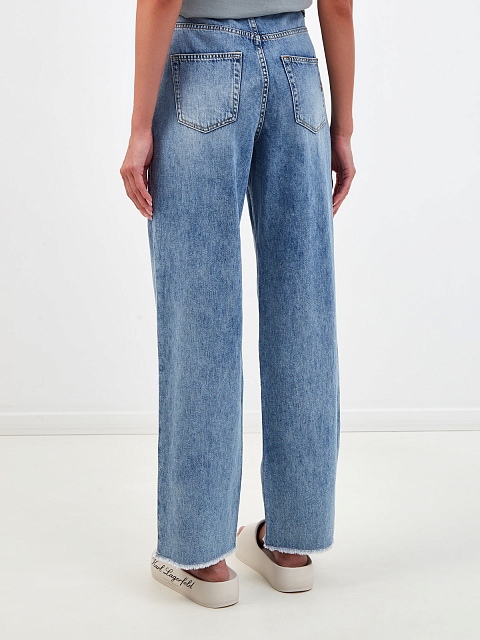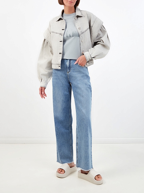 Джинсы из выбеленного денима с контрастной прострочкой и вышивкой