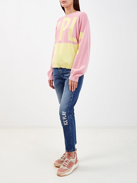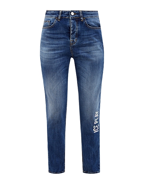 Джинсы на высокой посадке с голографическим принтом
