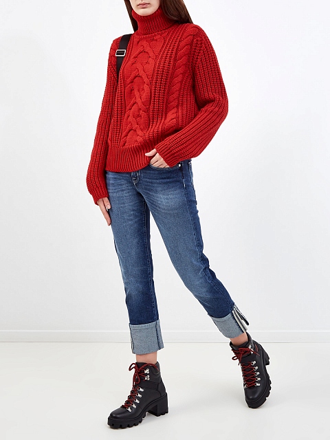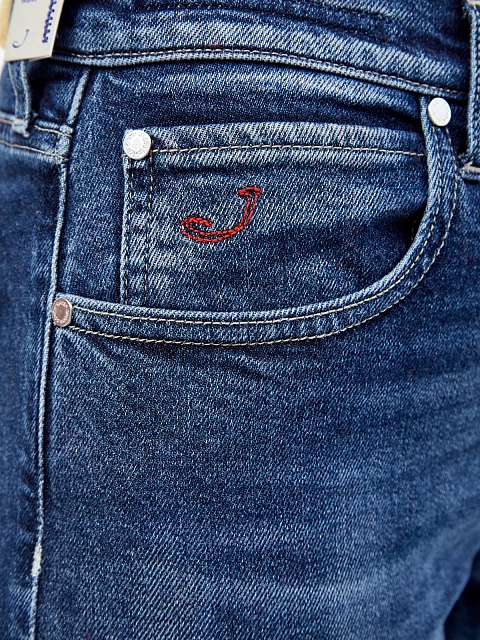 Прямые джинсы Antonella от Jacob Cohen выполнены из японского денима kurabo, эластичные волокна в составе обеспечивают комфорт в движении. Отвороты с разрезами и отделкой в стиле кромки селвидж вносят в образ нотку неформального стиля. Фирменные акценты — нашивка из меха пони на поясе и фурнитура ручной огранки с покрытием silver-plated из серебра. Сделано в Италии.
