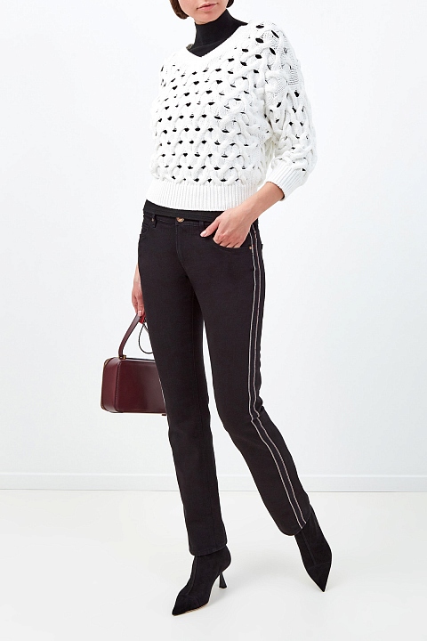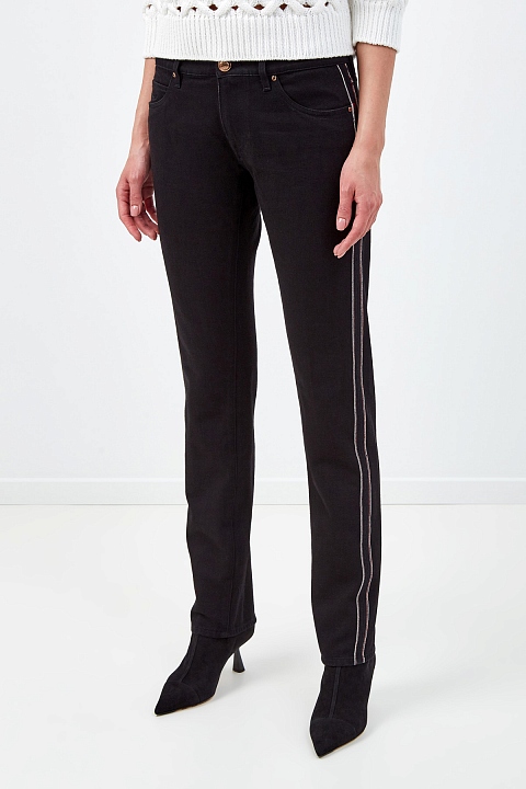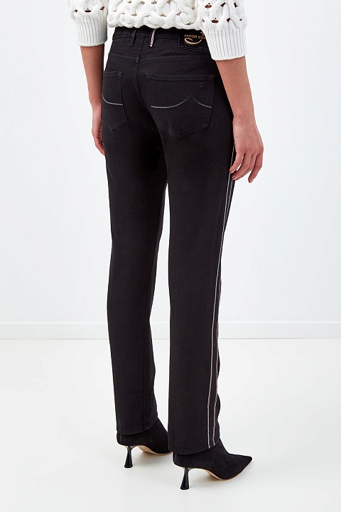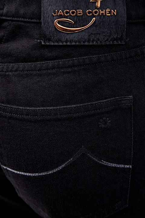 Джинсы ручной работы от Jacob Cohen. Исполнение Made in Italy подчеркивают кромки селвидж, которые характерны для денима, изготовленного на станках старого образца. Синтетические волокна в составе позволяют сделать материал эластичным, сохранив ценные свойства натурального хлопка. Модель прямого кроя на средней посадке создана в универсальном черном цвете. Детали: фурнитура ручной огранки, флакон с ароматом и платок в комплекте, нашивка из меха пони на поясе. Сделано в Италии.