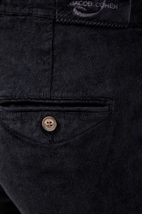 Базовые черные джинсы укороченного кроя Marina от Jacob Cohen выполнены вручную из вельвета. Модал и хлопок придают поверхности бархатистый эффект, а волокна эластана обеспечивают комфорт в движении. Дизайн карманов заимствован у классических брюк. Детали: нашивка из меха пони в тон изделию, средняя посадка. Сделано в Италии.
