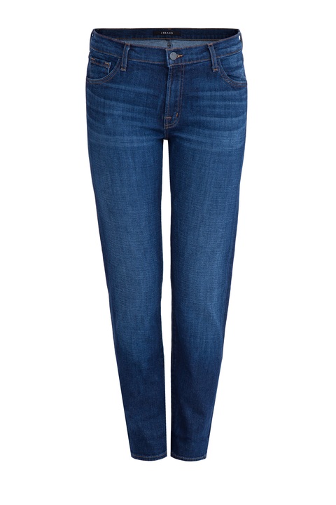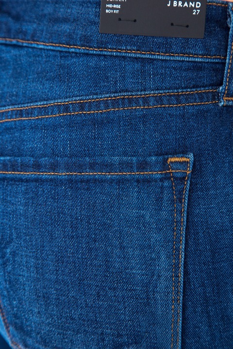 Женские джинсы Jbrand с притачным поясом и контрастной отстрочкой выполнены из плотного хлопкового денима. Объемный крой «бойфренд» визуально делает фигуру более женственной. Винтажное высветление завершает образ.