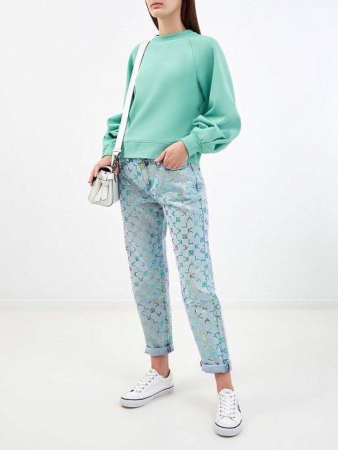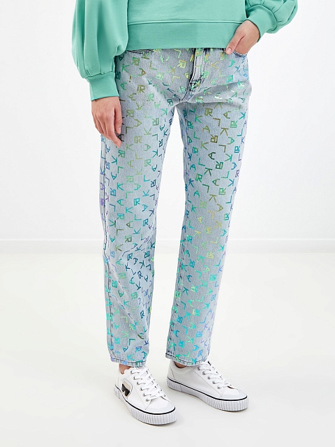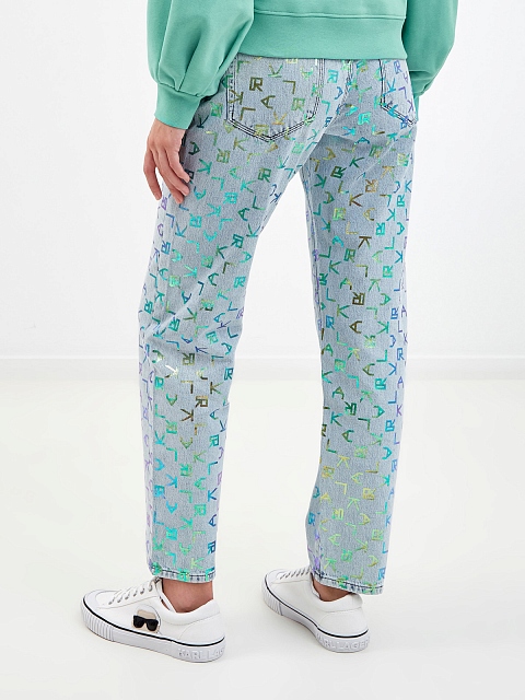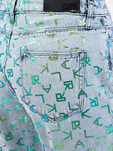 Джинсы базового прямого кроя от Karl Lagerfeld выполнены из держащего форму хлопкового денима. All-over принт Karl Arcade с голографическим финишем создает яркий образ. Модель на комфортной средней посадке дополнена пятью карманами, застежкой на пуговицу и молнию, а также нашивкой из плотного силикона на поясе.