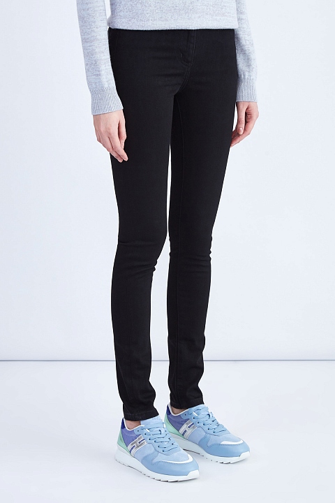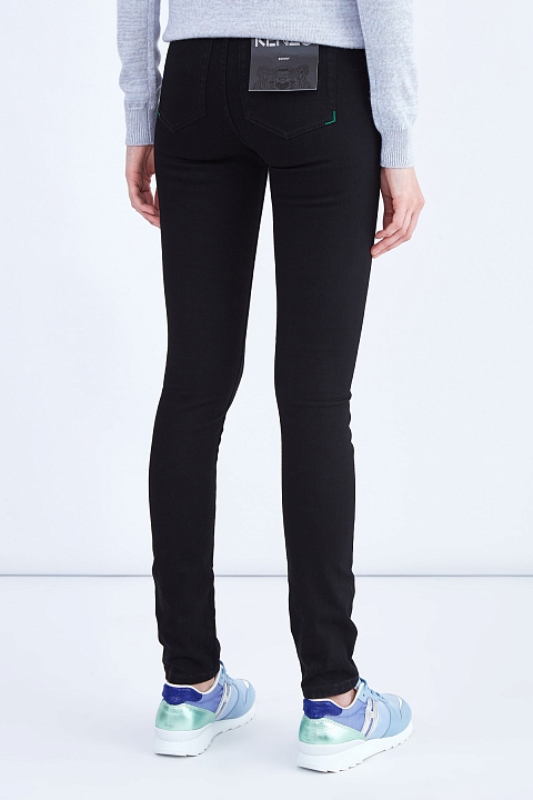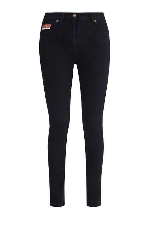 Джинсы скинни с черном цвета с контрастной нашивкой на кармане