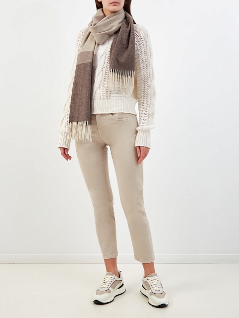 Укороченные брюки из хлопкового габардина с нашивкой в тон