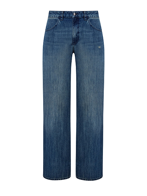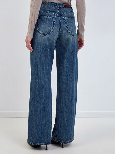 Джинсы с винтажным эффектом и деталью из кожи на поясе
