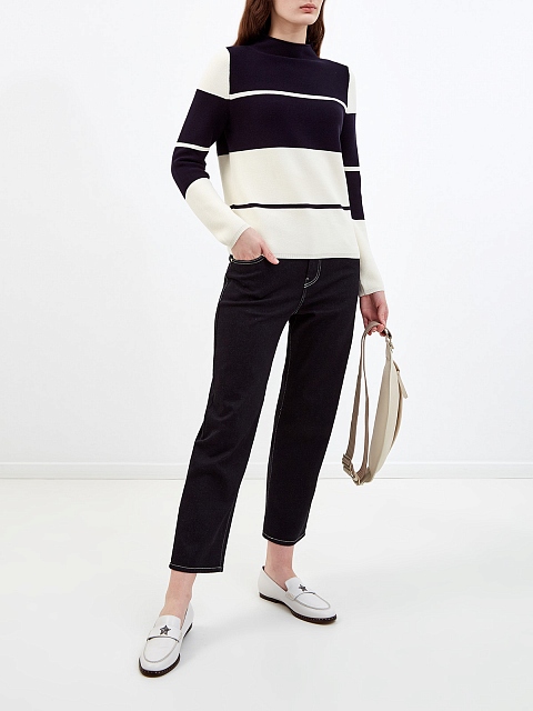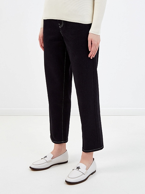 Джинсы на высокой посадке с прострочкой в стиле ретро