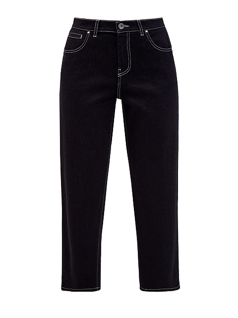 Базовые джинсы укороченного кроя от Lorena Antoniazzi выполнены в графитово-черном оттенке. Плотный хлопковый деним с добавлением эластана не стесняет движений, контрастная прострочка швов подчеркивает настроение в стиле ретро. Детали: прорезные карманы, литая символика бренда, застежка на молнию и пуговицу, высокая посадка. Сделано в Италии.
