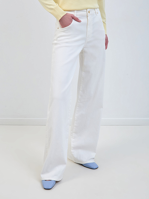 Белые джинсы-клеш из хлопкового денима с кожаным патчем