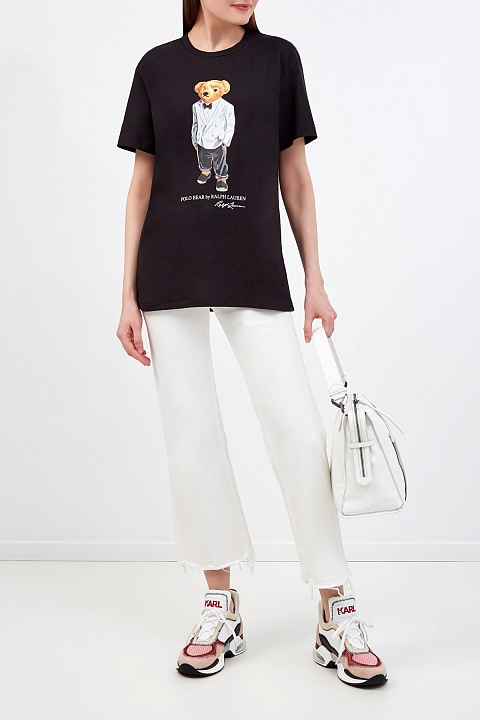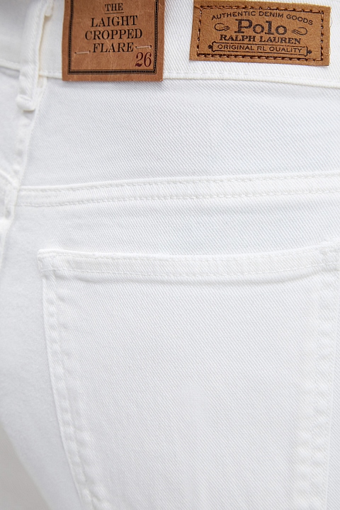Джинсы укороченного расклешенного кроя от Polo Ralph Lauren выполнены из эластичного хлопкового денима, выверенный состав ткани с добавлением эластичных волокон обеспечивает комфорт в движении. Нижние кромки с эффектом необработанного края придают фирменный винтажный штрих. Детали: пять карманов, застежка на пуговицу и молнию.