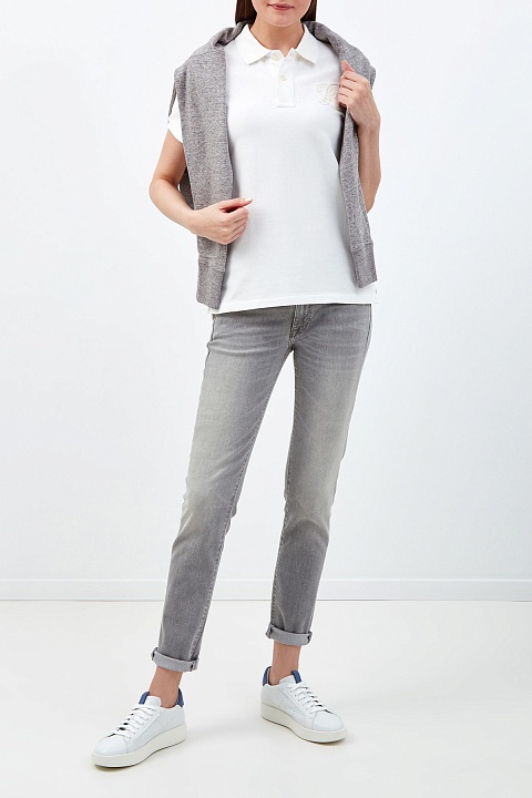 Джинсы-skinny от Polo Ralph Lauren выполнены из эластичного денима в универсальном оттенке «графит». Выбеленный эффект и заниженная линия талии подчеркивают неформальный стиль изделия. Детали: необработанный нижний край, пять карманов, застежка на пуговицу и молнию.