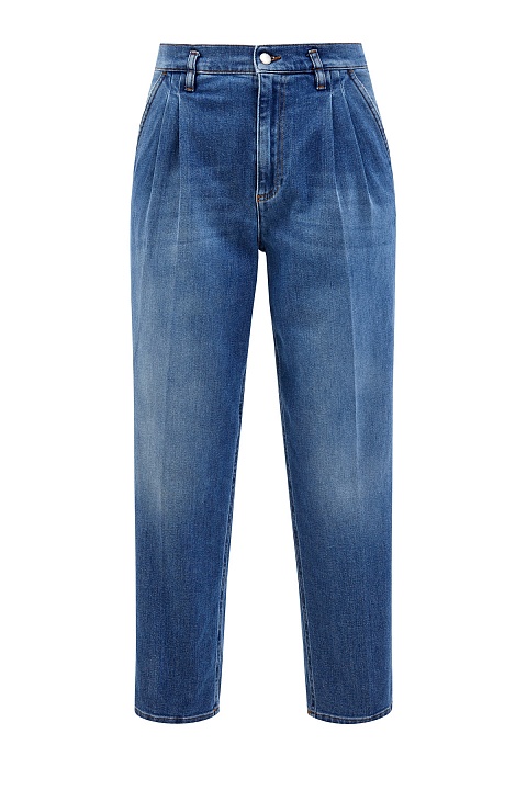 Женские джинсы свободного кроя от REDValentino выполнены из плотного хлопкового денима в классическом синем цвете. Легкий выбеленный эффект придает повседневному образу расслабленный акцент. Укороченная модель дополнена заложенными складками. Детали: четыре кармана, застежка на пуговицу и молнию на передней планке, брендированная фурнитура.