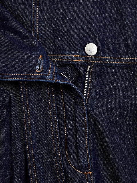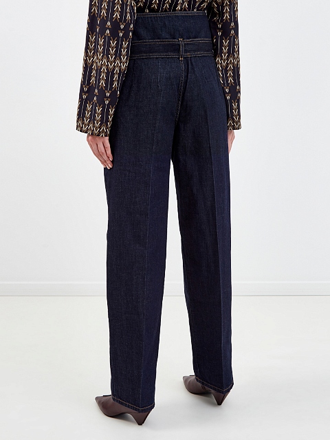 Джинсы oversize-силуэта от Stella McCartney. Плотный деним окрашен без применения агрессивных химикатов, экологически чистый хлопок выращен на территориях с оптимальным климатом для сохранения запасов пресной воды. Заложенные складки подчеркивают объемный крой. Детали: прострочка швов контрастной нитью, съемный пояс, застежка на пуговицу и молнию, два кармана по бокам.