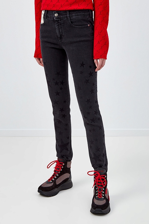 Джинсы-skinny с бархатным принтом звезд
