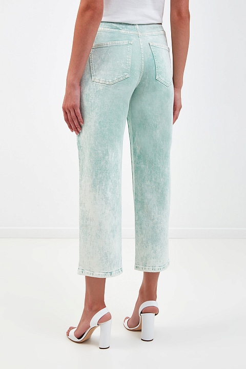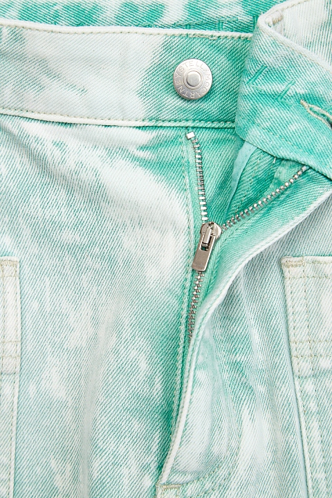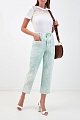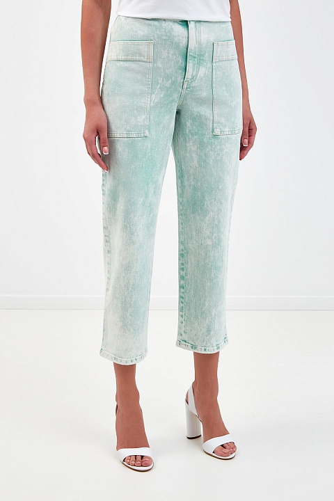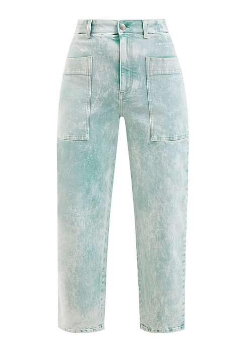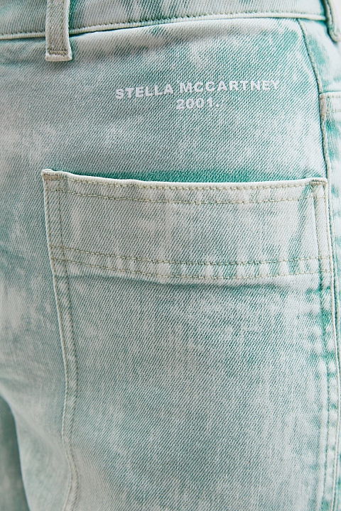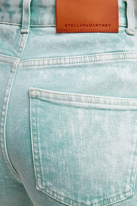 Свободные джинсы mom’s от Stella McCartney выполнены из плотного денима с выбеленным эффектом в светло-зеленом цвете. Актуальная модель на высокой посадке идеально подходит для расслабленных летних образов. Дизайнеры дополнили изделие объемными накладными карманами. Детали: брендированная фурнитура, застежка на пуговицу и молнию, четыре кармана, простроченные швы.