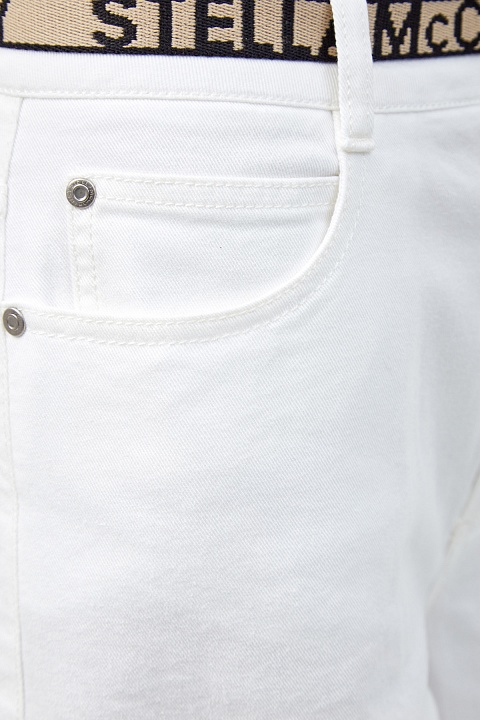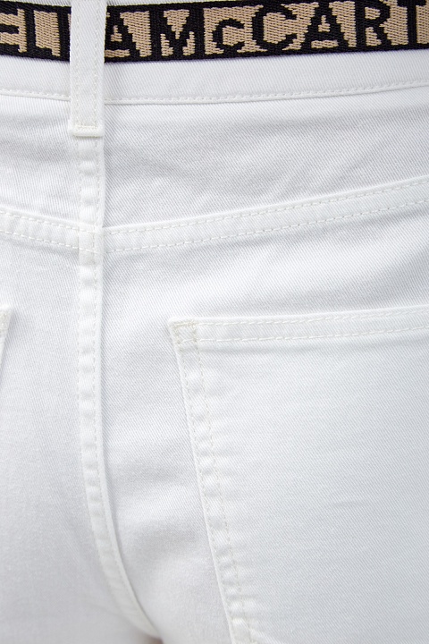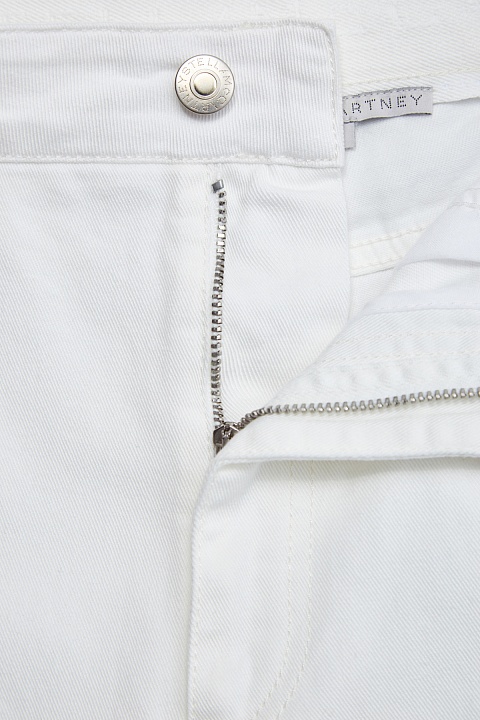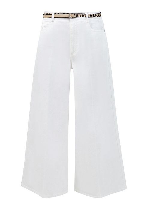 Укороченные джинсовые кюлоты от Stella McCartney выполнены из денима средней плотности в универсальном белом цвете. Фирменный штрих — тонкий пояс с D-образными фиксаторами и принтом-монограммой. Модель на высокой посадке с комфортным расклешенным от бедра силуэтом. Детали: застежка на пуговицу и молнию, классические пять карманов.