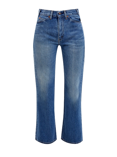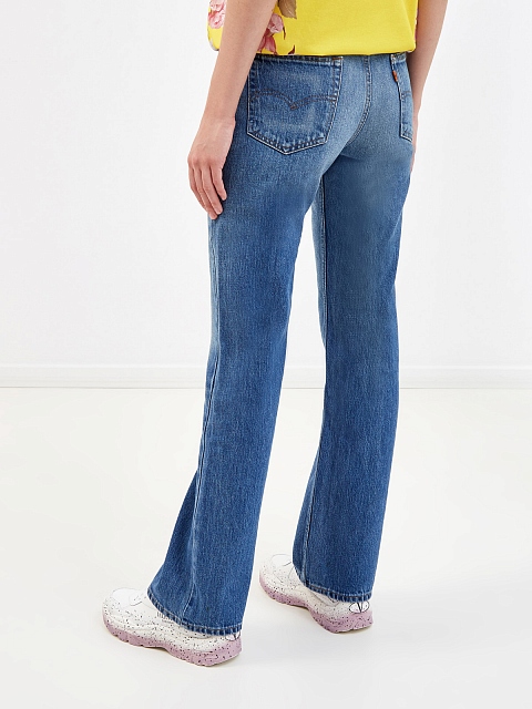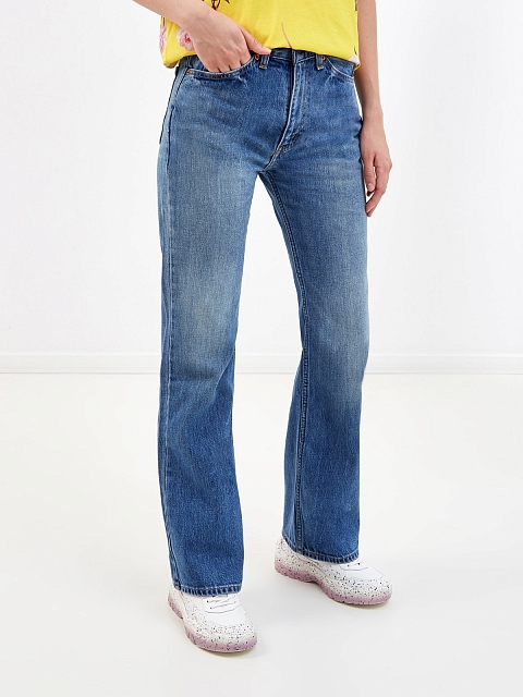 Джинсы из коллаборации Levi’s® X Valentino. Модель выполнена из плотного хлопкового денима — держащая форму ткань подчеркивает культовые линии кроя с оригинальной планкой с карманами. Слегка расклешенный книзу крой и высокая линия талии визуально удлиняют силуэт и формируют гармоничные пропорции, а минималистичный дизайн делает модель универсальной для составления любого образа. Детали: брендированная фурнитура Levi’s®, контрастная отстрочка швов, монограммы брендов на внутренней стороне пояса.