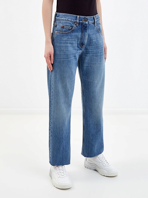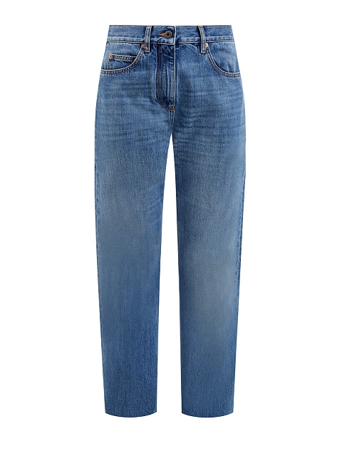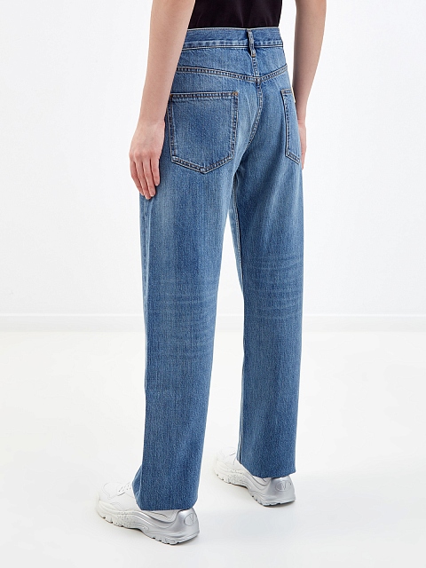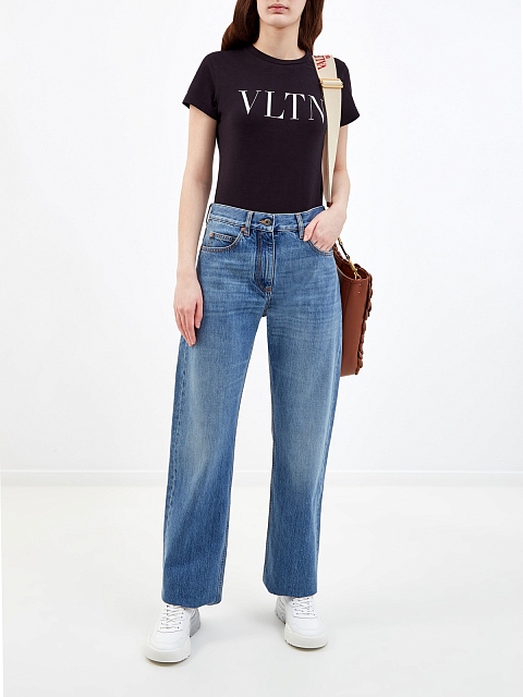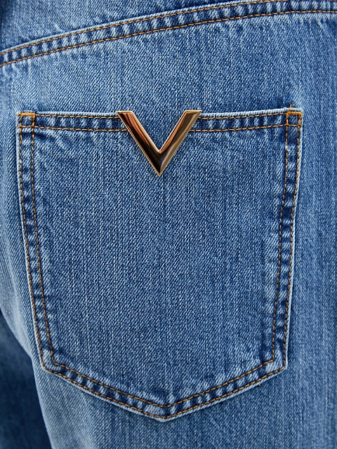 Базовые джинсы baggy от Valentino выполнены из хлопкового денима — плотная натуральная ткань подчеркивает объемный крой изделия. Модель на средней посадке с контрастной прострочкой швов задает расслабленное настроение всему образу, а отделка VGOLD на кармане вносит штрих фирменной роскоши. Детали: застежка на пуговицу и молнию, классические пять карманов, фурнитура оттенка латуни. Сделано в Италии.