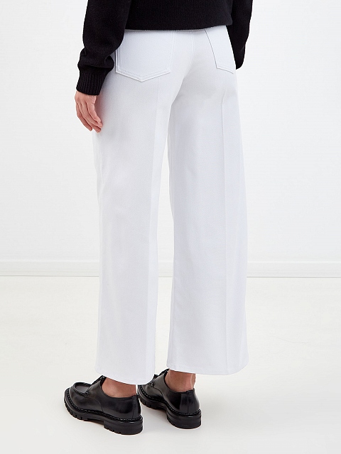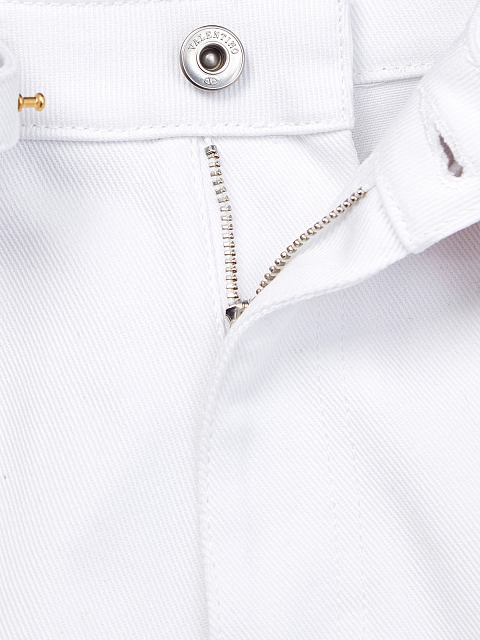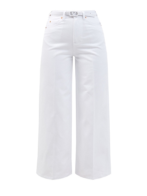 Укороченные джинсы от Valentino созданы из плотного хлопкового денима в белом цвете. Модель расклешенного кроя дополнена съемным поясом с декором VLogo Signature и нашивкой из кожи с логотипом на спинке. Детали: застежка на пуговицу и молнию, пять карманов, брендированная фурнитура. Сделано в Италии.