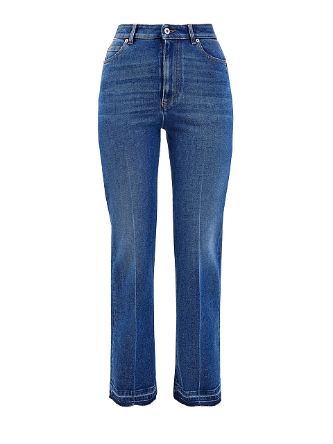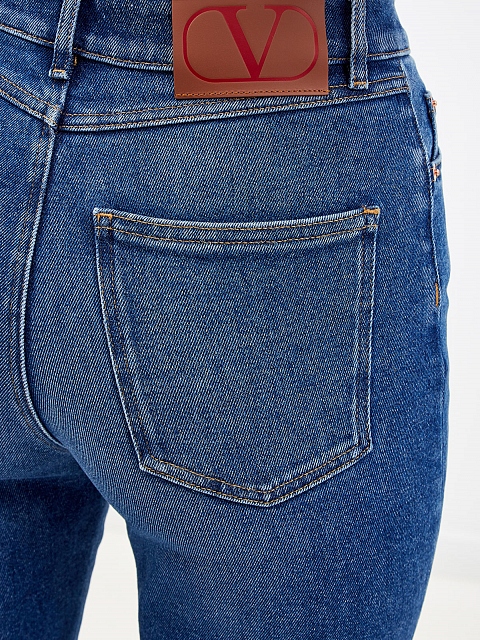 Стильные женские джинсы от Valentino выполнены из плотного хлопкового денима и окрашены мастерами бренда вручную. Слегка расклешенный книзу крой и высокая линия талии визуально удлиняют силуэт и формируют гармоничные пропорции, а эффект необработанного края делает модель универсальной для составления расслабленных повседневных образов. Детали: брендированная фурнитура, нашивка из кожи на спинке. Сделано в Италии.