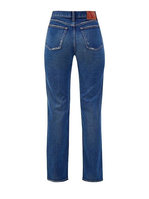 Стильные женские джинсы от Valentino выполнены из плотного хлопкового денима Blue Washed и окрашены мастерами бренда вручную. Прямой крой и высокая линия талии визуально удлиняют силуэт и формируют гармоничные пропорции, а выбеленный эффект делает модель универсальной для составления расслабленных повседневных образов. Детали: брендированная фурнитура, нашивка из кожи на спинке. Сделано в Италии.