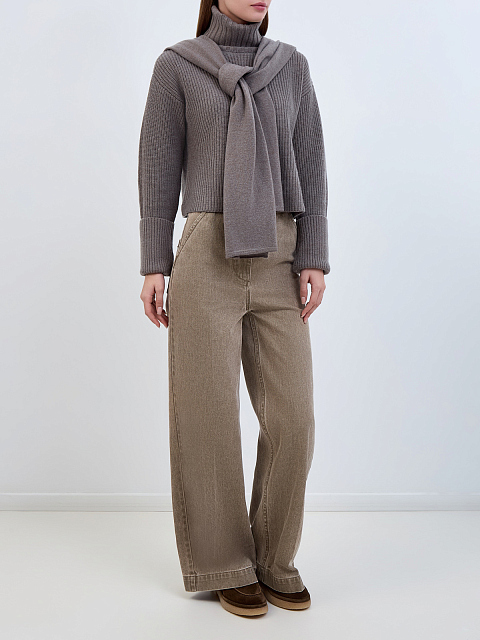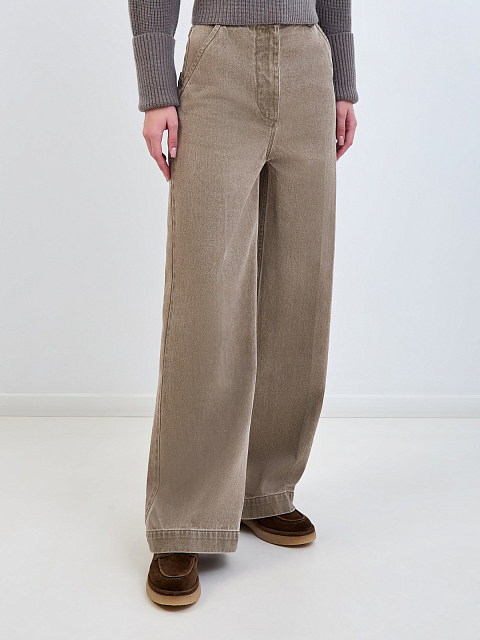 Широкие джинсы из окрашенного вручную хлопкового денима