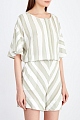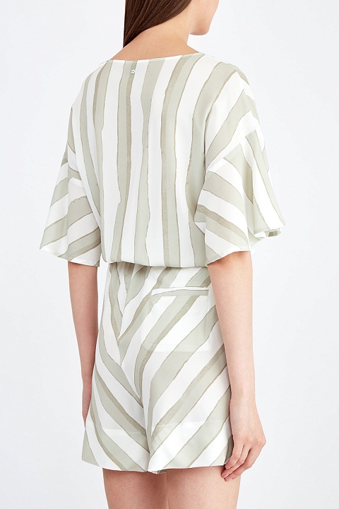 Лаконичный женский комбинезон свободного кроя от от Lorena Antoniazzi выполнен из воздушной ткани с принтом в полоску в мягких молочных и фисташковых тонах. Образ в расслабленном стиле создает силуэт со спущенной линией плеч и круглой проймой горловины. Эластичная вставка по линии талии подчеркивает струящуюся фактуру материала. Детали: прорезные карманы, короткие рукава. Сделано в Италии.