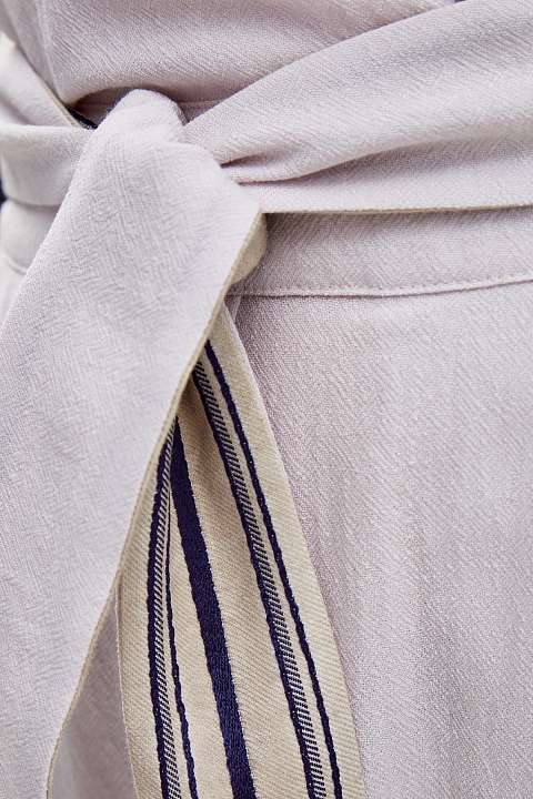 Комбинезон от Lorena Antoniazzi создан из шерстяной ткани в актуальном лавандовом оттенке. Фактурная поверхность материала смягчает строгие линии кроя. Пояс дополнен оборотной стороной в полоску, что создает дополнительные вариации цветовых сочетаний в образе. Воротник с лацканами и рукава в рубашечном стиле визуально структурируют силуэт. Детали: присборенная эластичная отделка на спинке, отвороты на брюках. Сделано в Италии.