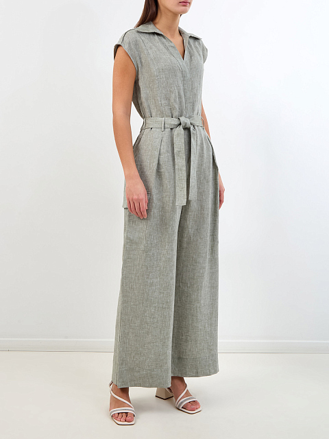 Комбинезон из льняной ткани с ювелирными цепочками и поясом
