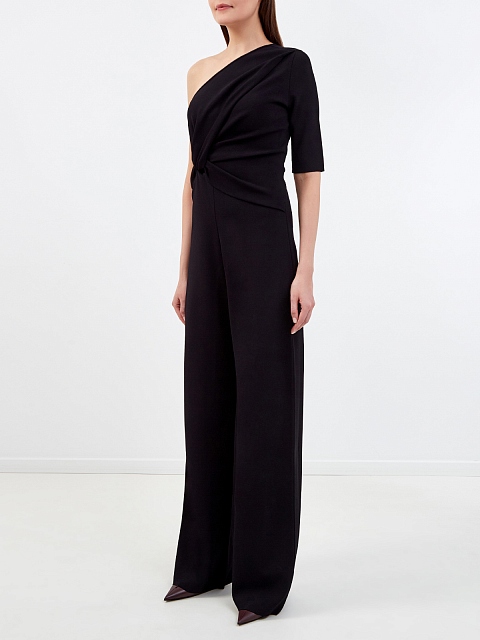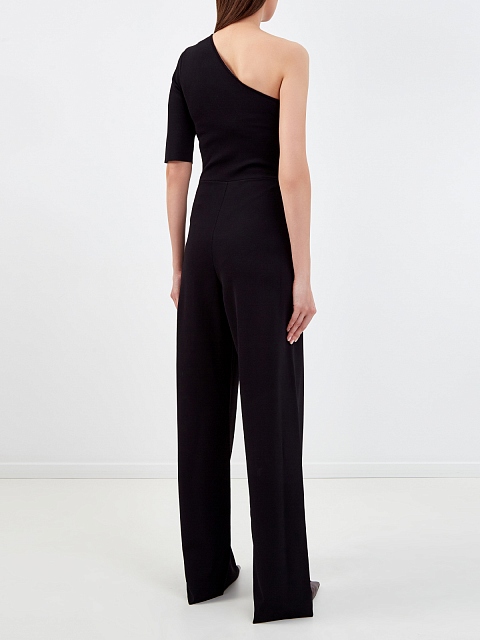 Минималистичный комбинезон от Stella McCartney выполнен из плотного трикотажа из экологически чистой вискозы. Благодаря эластичным волокнам в составе и плотному расположению петель материал обеспечивает посадку точно по фигуре. Модель сложного кроя с лифом на одно плечо, асимметричным архитектурным узлом, а также расклешенными от бедра брюками. Потайная застежка-молния на спинке завершает лаконичный дизайн.