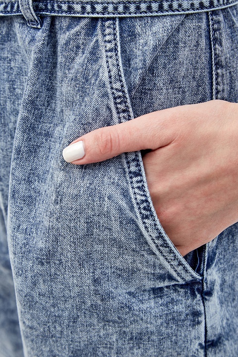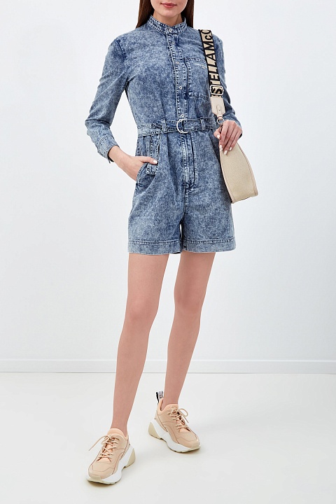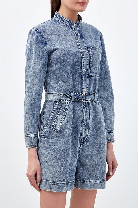 Комбинезон из денима с эффектом кислотной стирки и поясом