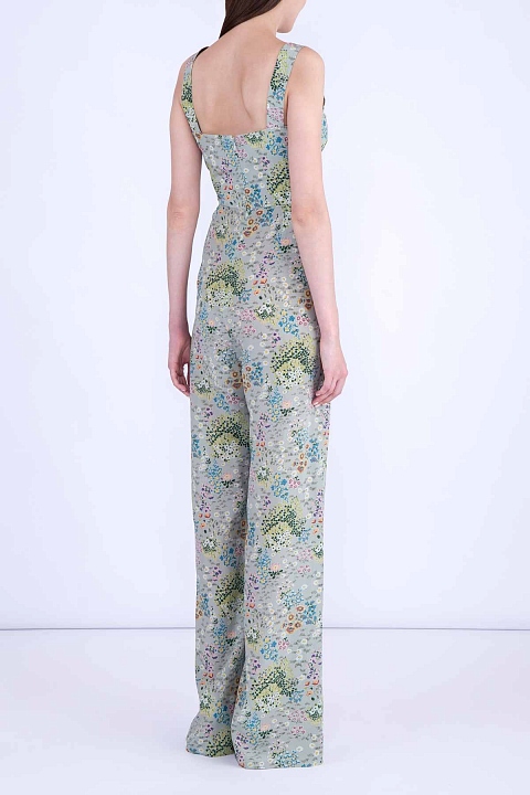 Комбинезон из шелка с квадратным вырезом и широкими бретелями