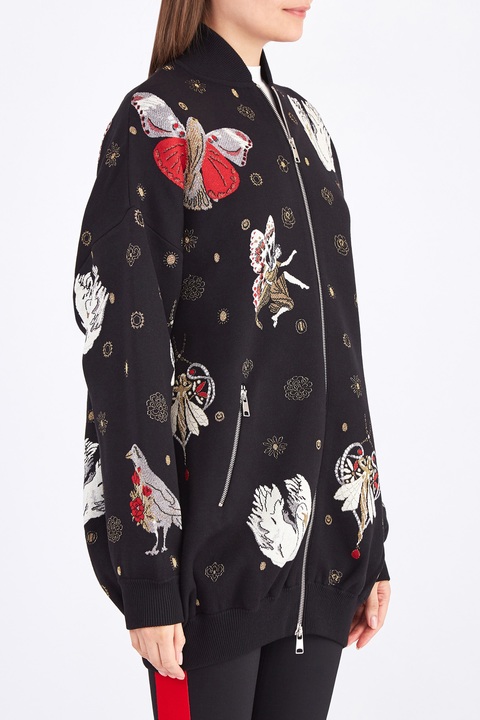 Бомбер удлиненного кроя с вышивкой шелком и металлизированной нитью