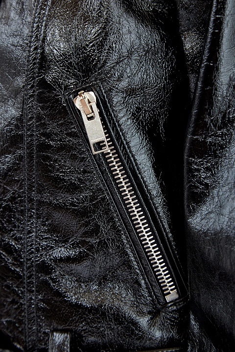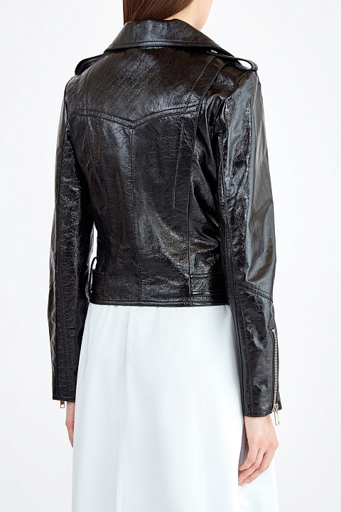Кожаная куртка в байкерском стиле из лаковой кожи с эффектом кракле