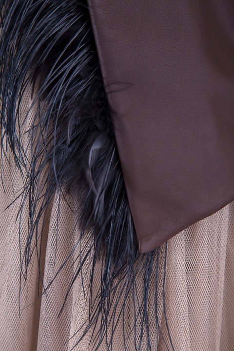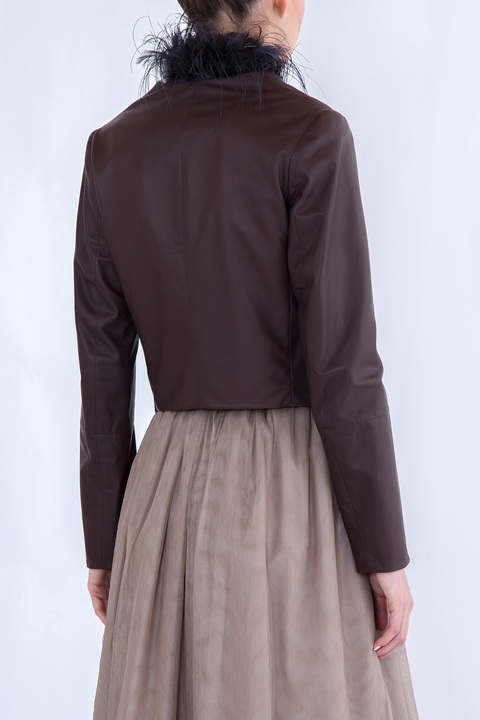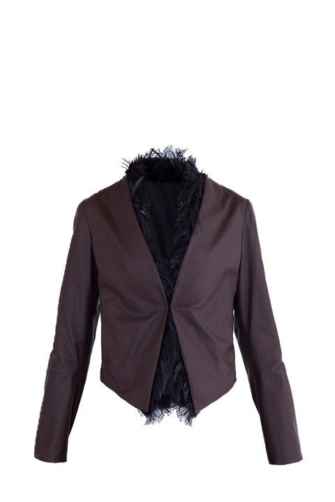 Кожаная куртка с отделкой из перьев страуса