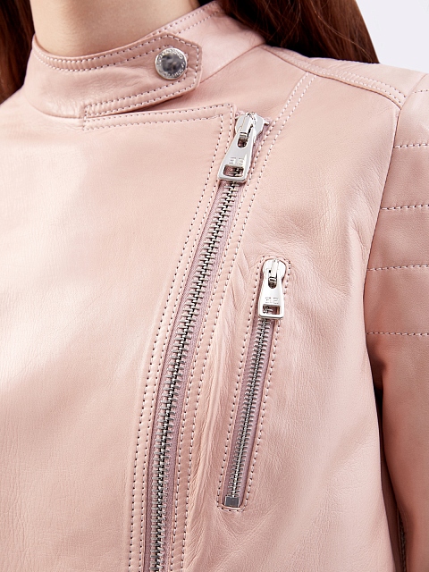 Укороченная куртка из гладкой кожи с серебристой фурнитурой