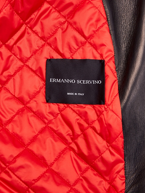 Стильная куртка-косуха от Ermanno Scervino создана из мягкой кожи с матовой поверхностью в базовом черном цвете. Изделие в байкерском стиле дополнено массивными молниями, фурнитурой с серебристым напылением, а также асимметричной застежкой. Детали: отложной ворот, яркая внутренняя подкладка со стеганым эффектом, укороченный крой. Сделано в Италии.